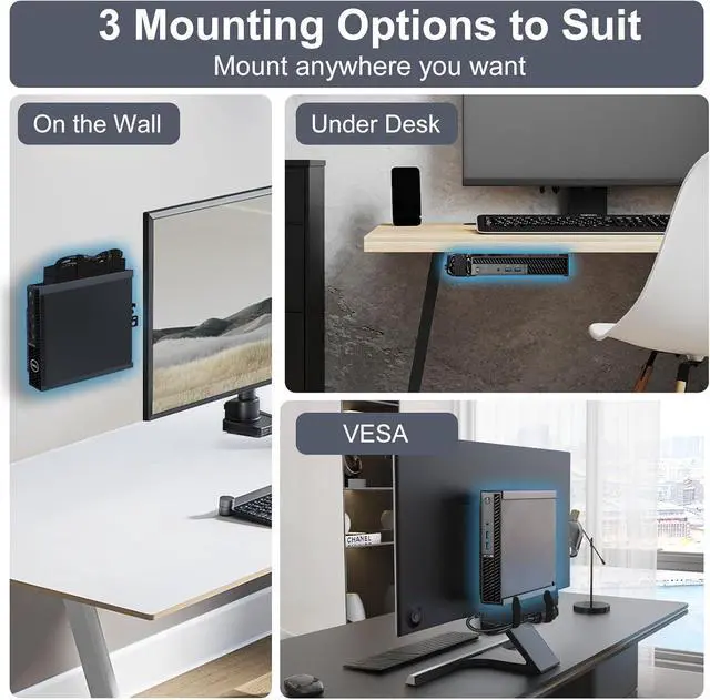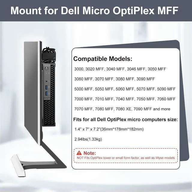 Mount: Mini PC vesa mount for OptiPlex micro computers, easily attach your micro OptiPlex to the back of your monitor using a 75 x 75 mm or 100 x 100 mm Vesa pattern, or choose a standard monitor mount. (IMPORTANT: Please verify that your monitor has a four-hole VESA pattern before mounting). You can mount it on the wall or under the desk to meet your different needs.