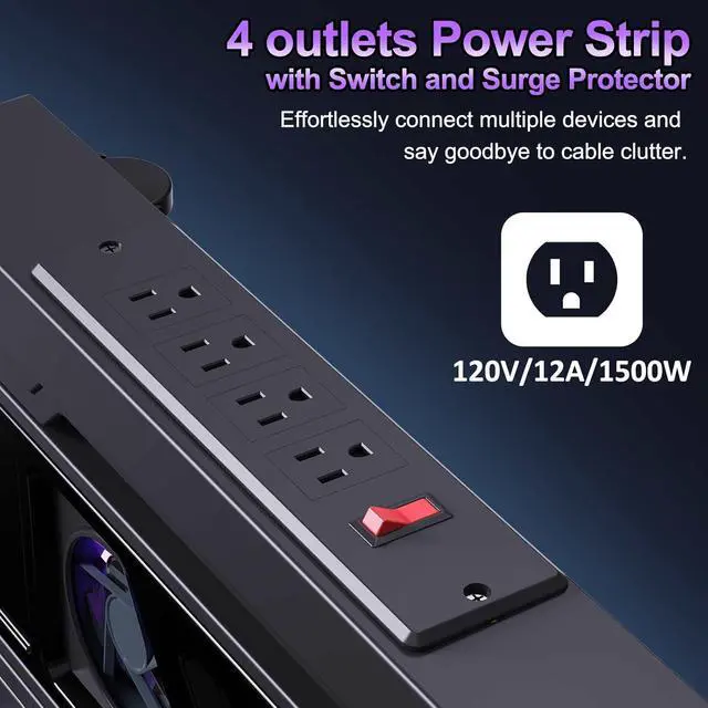Built-In Power Panel: This computer tower stand comes with a built-in charging station that eliminates cable clutter and simplifies your workspace. Easily connect your PC and peripherals without tangled wires. This rolling computer stand with power strip is perfect for creating a clean and organised setup while enhancing accessibility to power connections.