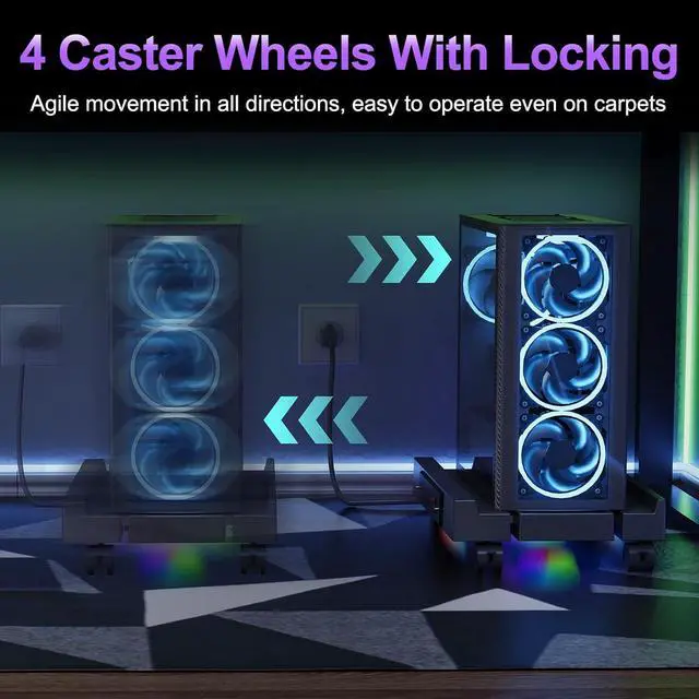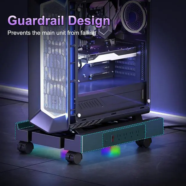 Practical Design: The under desk cpu holder is designed with protective rails on both sides to prevent the computer case from falling. Whether you're using it at home or in the office, it's easy to reach and place, making it ideal for use as a computer tower, carpeted pc stand, under-desk pc stand and desktop pc stand