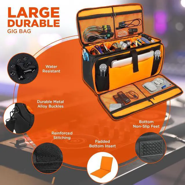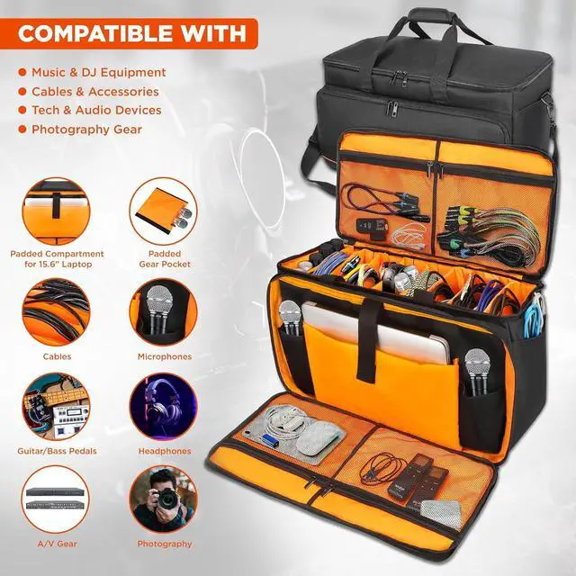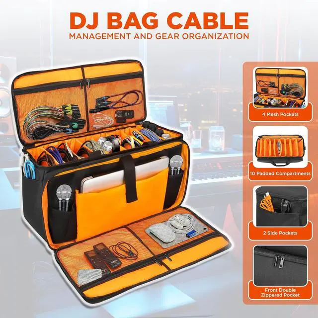 Multi-Functional Design - Adjustable padded strap, 4 zippered mesh pockets, 4 utility pockets, and laptop sleeve make this DJ cable bag ideal for solo gigs or band travel, simplifying setup with a versatile gear bag