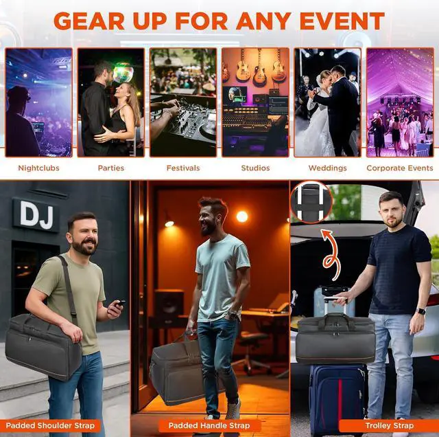 Versatile Storage - Features 4 zippered mesh pockets, 2 front/side utility pockets, reinforced handles, and a trolley strap, making this DJ bag a top travel cable organizer case and audio cable bag