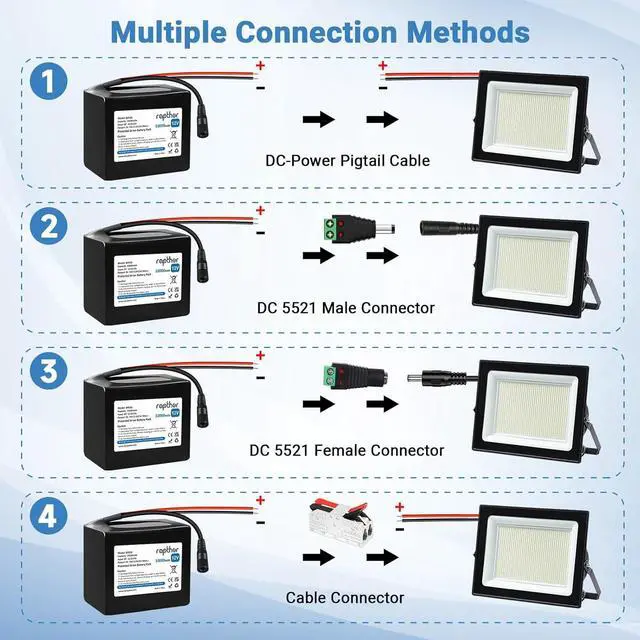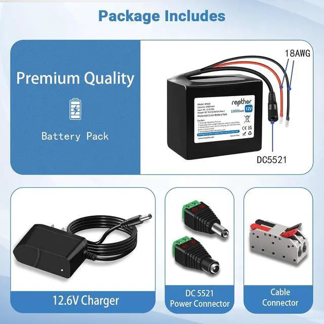 Long Using Life: This 12V DIY battery pack built-in rechargeable lithium-ion battery, it comes with over 800 times charge-discharge cycles without memory effect.