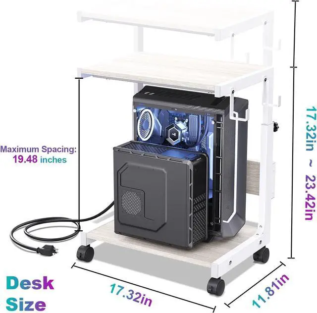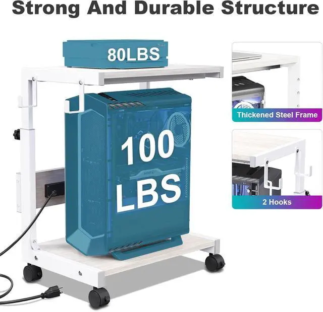 Multifunctional Computer Tower Stand: Our 2 tier computer cpu stand meets most storage needs, the bottom tier stores pc towers, the top shelf can be used to store items such as printers, audio equipment, books, and documents