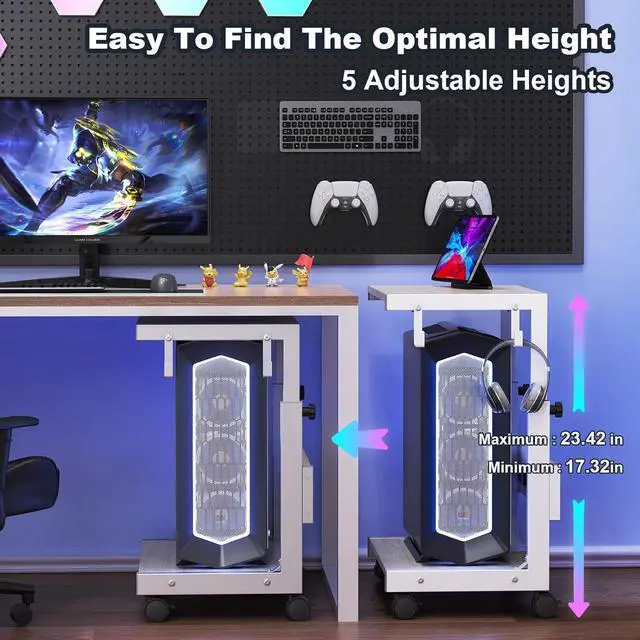 Mobility: This cpu holder cart is equipped with four 360° swivel silent casters made of high-quality PU material, paired with precision bearing design, ensuring smooth and quiet movement. The independent braking system enables instant positioning, allowing smooth movement even on soft carpet surfaces. The device can be easily moved without scratching the floor