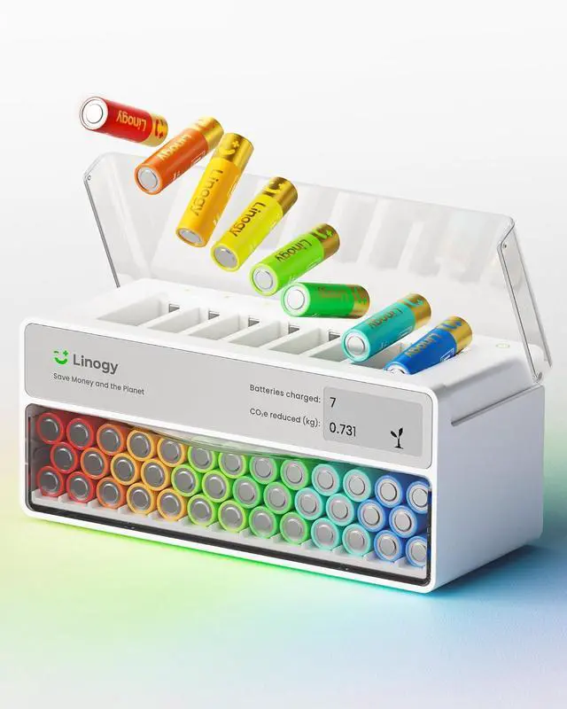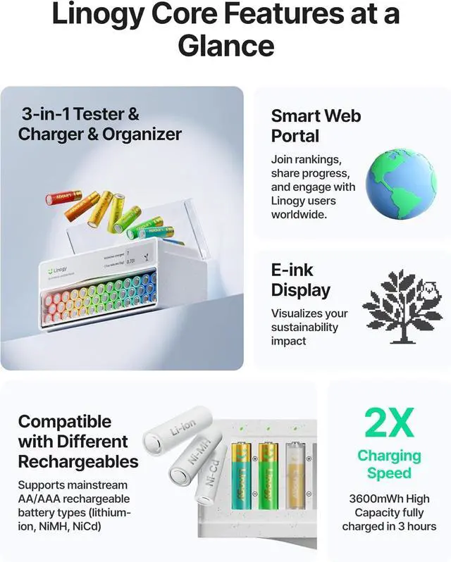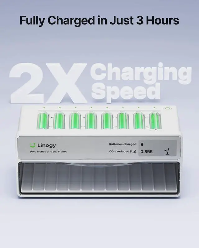 Smart E-Ink Status Display Monitor charging progress, battery health, and "ready-to-use" counts at a glance. Ultra-low-power screen provides clear visibility without annoying bright lights at night.