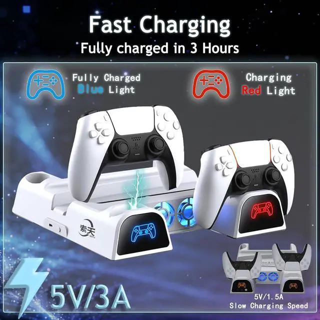 Smart Charging Status Display Dual LED windows show real-time charging status: Blue (standby), Red (charging), Blue (full charge) Controller indicators display orange breathing light (standalone charging), steady white (console-connected), or blue/white (in-game charging) Built-in battery protection pauses charging at 80%+ capacity; resumes automatically below 80% to extend battery health