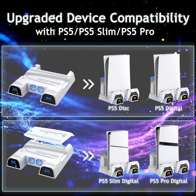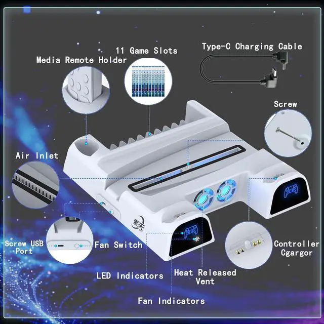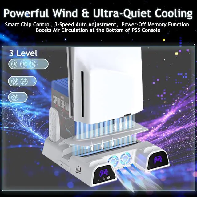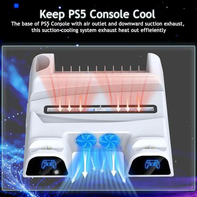 High scalability High scalability: It combines dual USB hubs, storage for most PS5 accessories, and support for new expansion installations, providing a clean and efficient multifunctional cooling bracket solution.