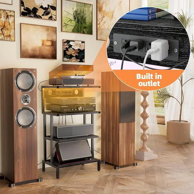 Built-in Outlet with 3 AC Ports & 2 USB Ports 3 AC outlets &2 USB ports this media stand seamlessly powers up a wide range of audio-visual devices.