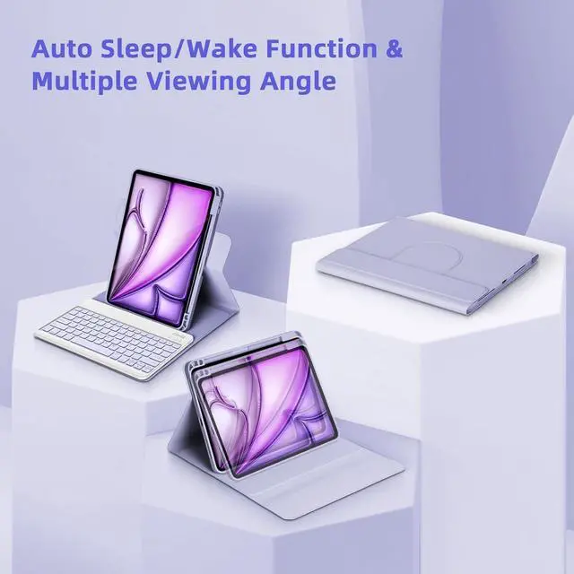 Auto Sleep/Wake Function & Multiple Viewing AngleYour iPad would automatically wake or sleep when the case is opened or closed, saving much power for your iPad. case has three built-in notches to adjust to the angle that meets your needs, whether you use it horizontally or vertically.