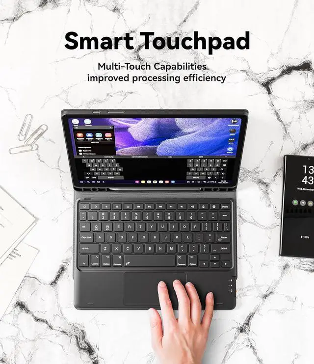 Touchpad]: The Galaxy Tab S9 keyboard case features a touchpad that records the smallest movements, allowing you to interact quickly, precisely, and comfortably with just one hand. Support multi-gesture operations, move left and right or return to the desktop, etc., allowing you to work efficiently as if you were on a laptop.