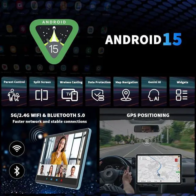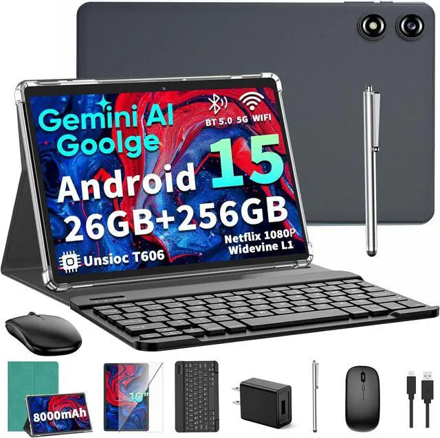 Stable Dual-Band WiFi and HD DisplayStay connected with advanced Dual-Band WiFi ( 2.4G /5G) for faster, more reliable internet. The 2 in 1 tablet features a 10.1 -inch IPS display delivering vibrant colors and sharp details. Certified for Winavide L1, it supports 1080P HD video playback on platforms like Amazon Prime Video. Additionally, the non-recessed 3.5 mm headphone jack allows you to listen to music while charging without interference, meeting diverse needs. This Android 15 tablet with keyboard features a smart camera for text recognition, translation, and object identification.