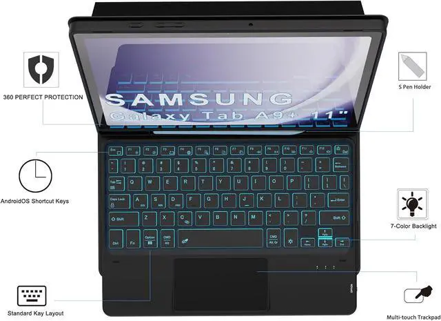 Multil-Viewing Stand & S-Pen Holder - Our Tab A9+ tablet case keyboard uses leather case and separated keyboard 2 in 1 design, so that you can use the tablet as a real laptop, creating a simple and smooth typing experience; built-in three angle stand; You can adjust the screen vision and typing position according to your needs. The built -in pencil slot can be easily stored your pen to avoid loss