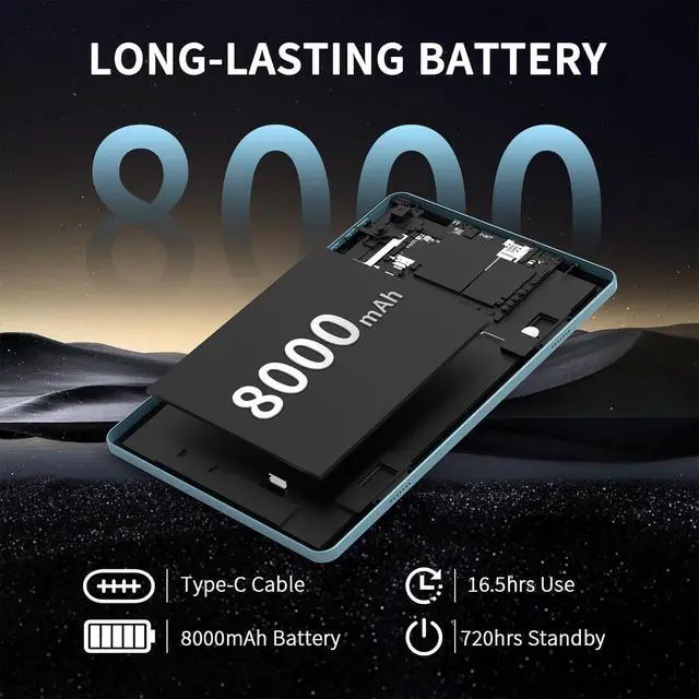 Stay Connected + 8000mAh BatteryThis android tablet with keyboard combines reliable positioning and high-speed connectivity. The 10 inch tablet is equipped with an accurate GPS system that provides stable navigation wherever you are. Dual-band 2.4G /5G WiFi brings you fast, consistent internet for browsing, streaming, and video calls. Electronic Tablets uses large 8000mAh battery delivers long-lasting power to support work, travel, and entertainment all day long. Stay connected, efficient, and engaged no matter where life takes you