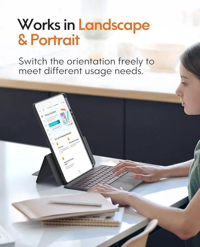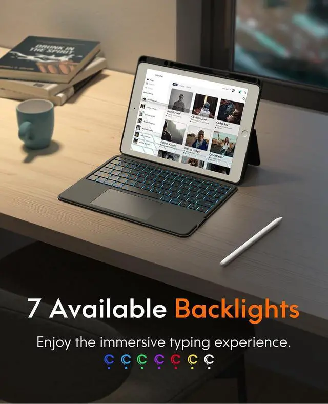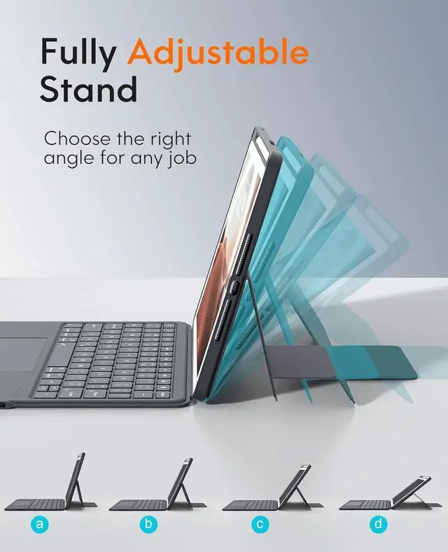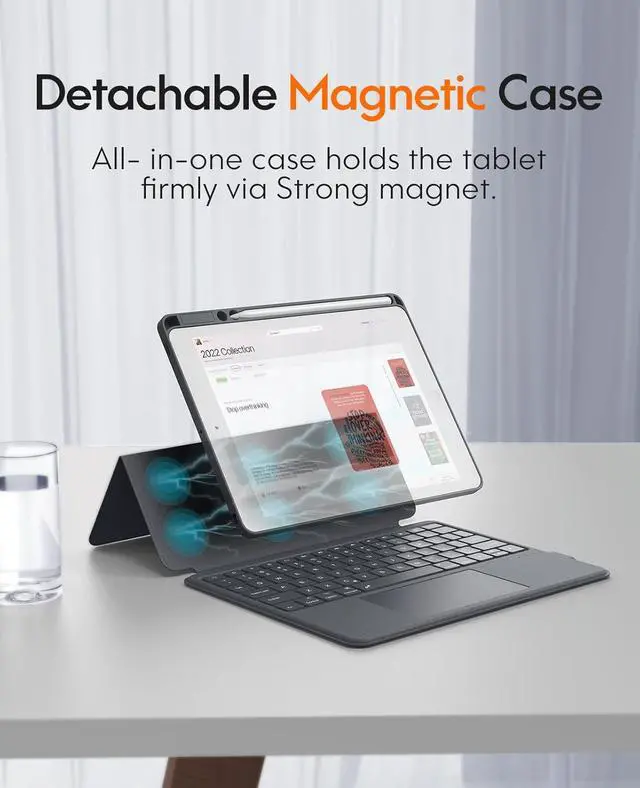 Magnetic Detachable The 10.2 -inch for iPad (9th/8th/7th Gen) is securely attached to the back of the keyboard by a built-in magnet, ensuring that the tablet stays in place and doesn't wobble during use.