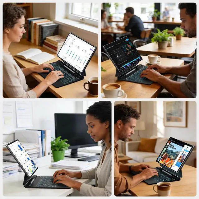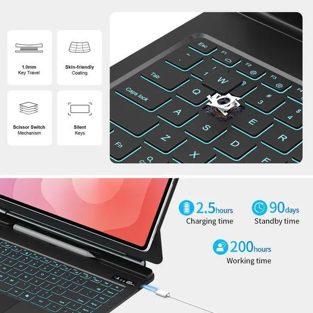 Premium Design: Sleek charcoal black finish with durable construction protects your tablet while the detachable keyboard design allows easy switching between tablet and laptop modes