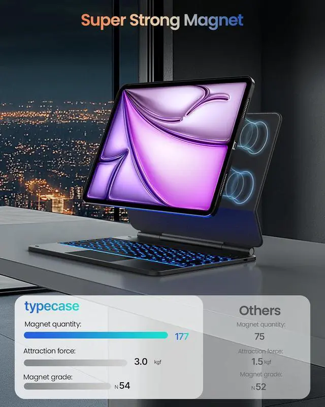 °: Strong magnets with a floating cantilever standsmoothly adjust to your ideal angle.