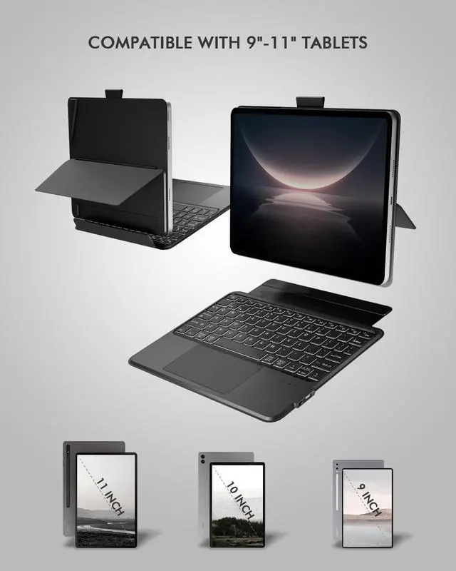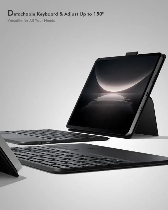 Multi-Angle Adjustable Stand: Detachable keyboard with strong magnetic snap-on for flexible typing positions. The any-angle stand helps you different stands for typing, viewing, or drawing.