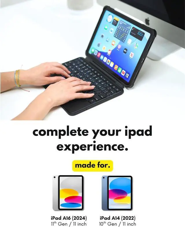 Fast Recharge: Stay powered with a 750mAh battery that offers up to 22 days of use and fast USB C recharging built into the iPad 11th generation case with keyboard.