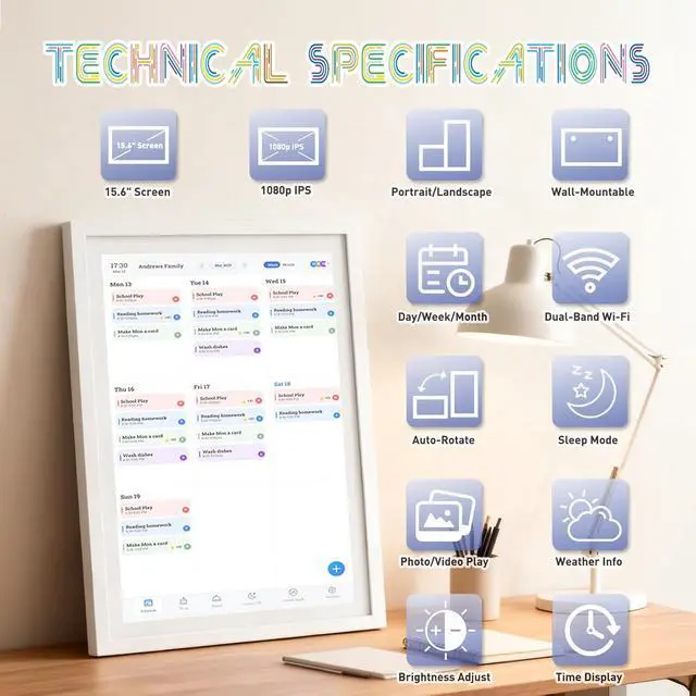 . " The digital calendar planner designed to adapt to your lifestyle. Place it on your desk in landscape mode, rotate it vertically to showcase portraits, or hang it on the wall as a digital centerpiece. With built-in speakers, its more than a photo frameits also your personal video player or message board. Perfect for living rooms, kitchens, classrooms, and workspaces.