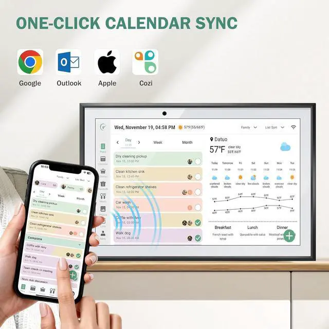 One: When in use, it can serve as a smart calendar, helping you manage your schedules and other affairs with ease. And when you don't need the calendar function, it can be transformed into a digital photo frame. You can upload your favorite photos to the cloud through the Touchtime app and set them as the screensaver to transform the calendar into a beautiful display of precious memories.
