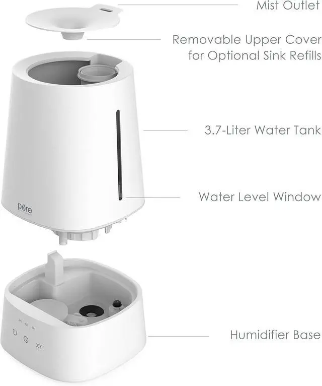 Custom Mist& All-Day Comfort: Choose from 3 mist levels for up to 38 hours on low, 23 on medium, or 15 on high. The mist instantly hydrates the air to soothe and keep you comfortable all day, year-round.