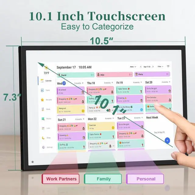 Calendar Syncing: Plug in, connect to Wi-Fi, and sync your calendars in minutes. Compatible with Google, iCloud, Outlook, Cozi, and Yahoo. Add events directly on the device or through the our app.