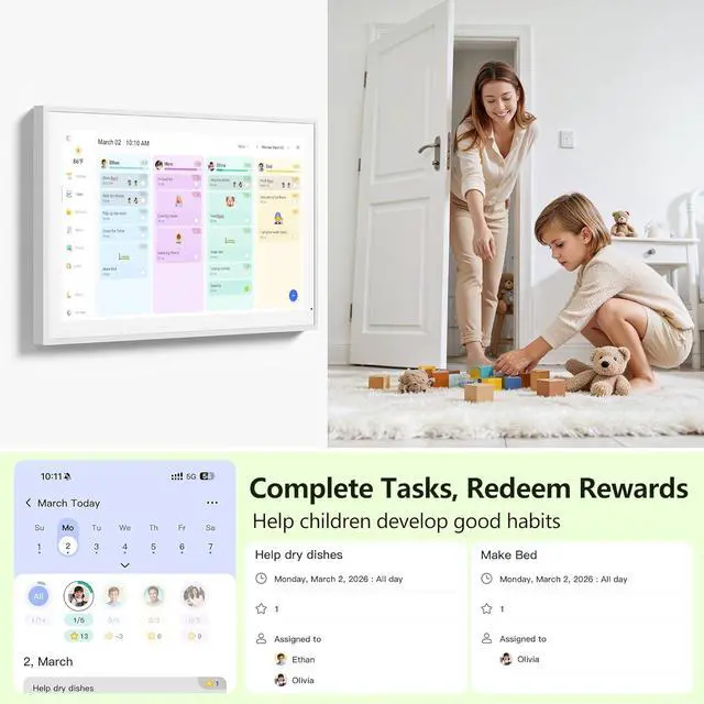You Choose Wall Mount or Desk Mount: The HD smart Calendar that mounts easily to any wall or sits beautifully on a desktop. Whether its in the kitchen, hallway, dining room, or living room, it can be seamlessly integrated into your space and daily life.
