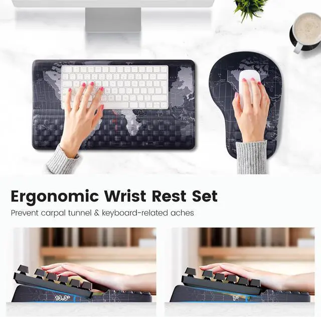 Ergonomic Mouse Pad & Keyboard Wrist Rest SetReduce Wrist Pain & Fatigue! Ergonomic Memory Foam Support for 8+ Hours Comfort