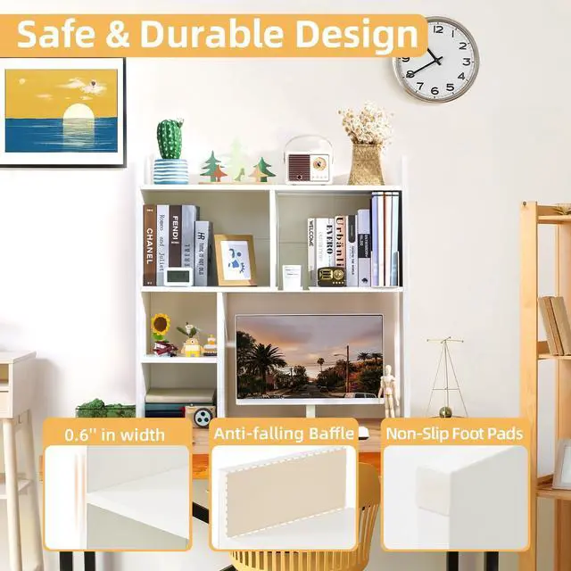 Safe Comes First: We provides 2 anti-tipping kits to anchor the storage bookshelf to the wall. The anti-slip foot pads underneath also avoid scratching your desk. Say goodbye to falling accidents!