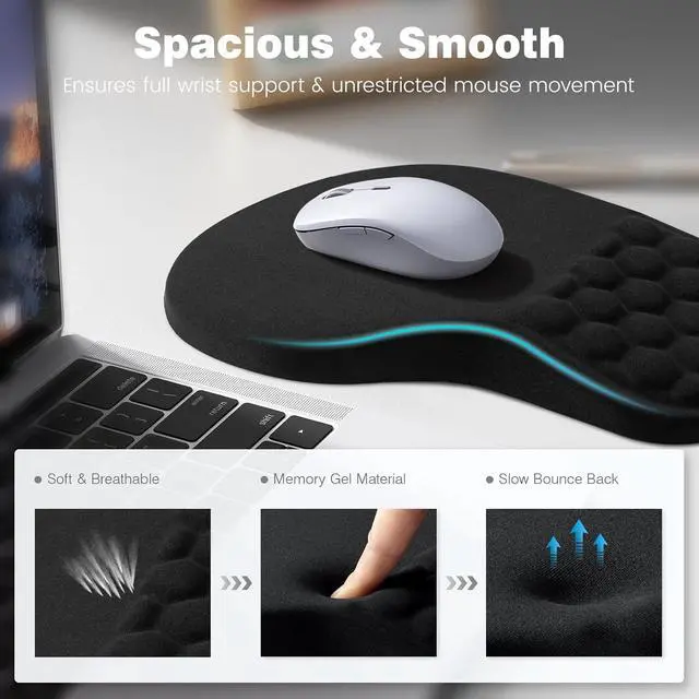 • Premium Memory Foam& Breathable Fabric: High-density memory foam provides cloud-like support while maintaining durability. The anti-sweat surface keeps wrists cool and dry.