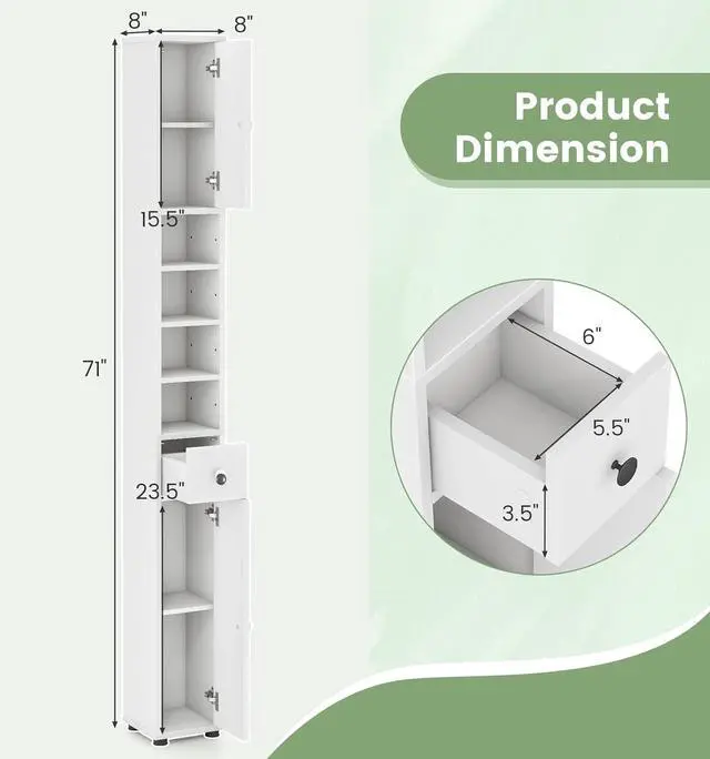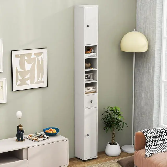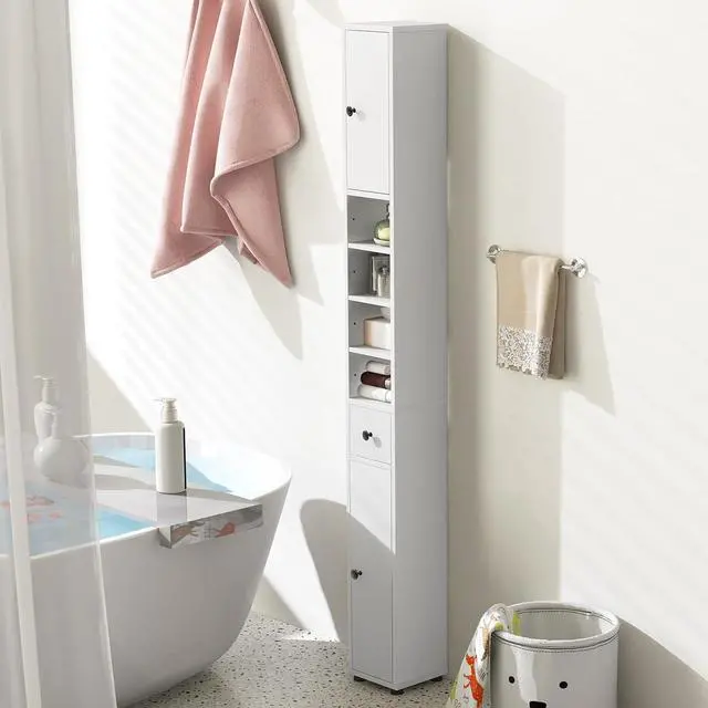Simple Style & Easy Matching: Designed in a simple style, this narrow bathroom storage cabinet fits in easily with your existing decorations, suitable for bathrooms, living rooms, kitchens, etc. The elevated bottom design keeps the cabinet away from water.