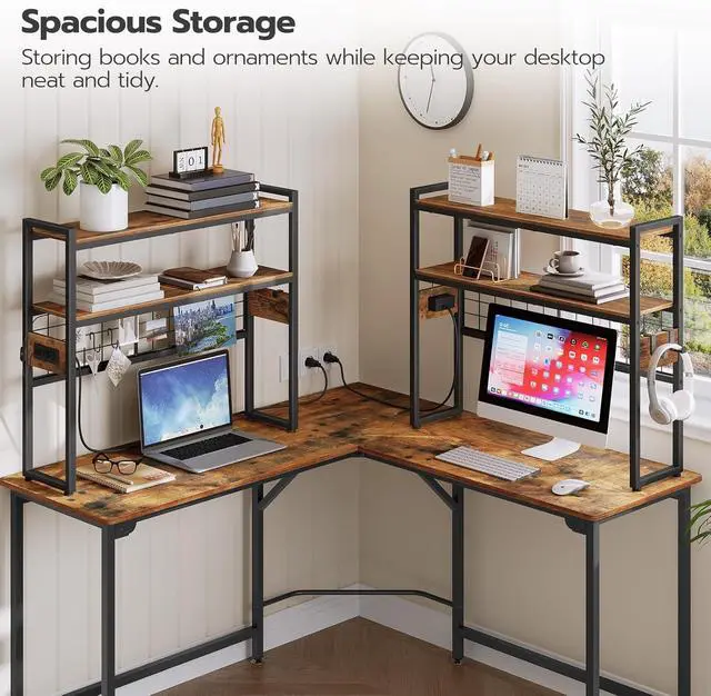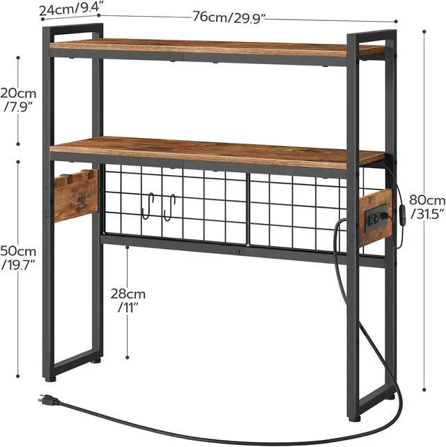 Practical Charging Station: Our desk shelf includes a power strip with 2 standard outlets and 2 USB ports. It can be installed on either the left or right side, allowing you to conveniently power your desk lamp, computer and cell phone