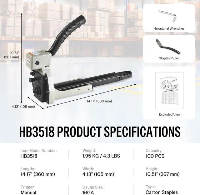 Premium Build & Ergonomic Design: Crafted from hardened iron and aluminum for durability, this manual carton closing stapler features an ergonomic long handle for effortless use. Includes a handy staple puller to easily correct misaligned staples, ensuring every box is sealed perfectly
