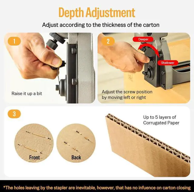 Versatile Stapler for All Sealing: manual carton closing stapler uses 16 gauge carton closing staples with a 1-3/8" crown and 3/4" length. Heavy-duty industrial staple gun is perfect for folding or sealing various boxes, cartons, single, double or triple-wall cardboard and corrugated boards. Suitable for family moves, corporate logistics packaging, and more
