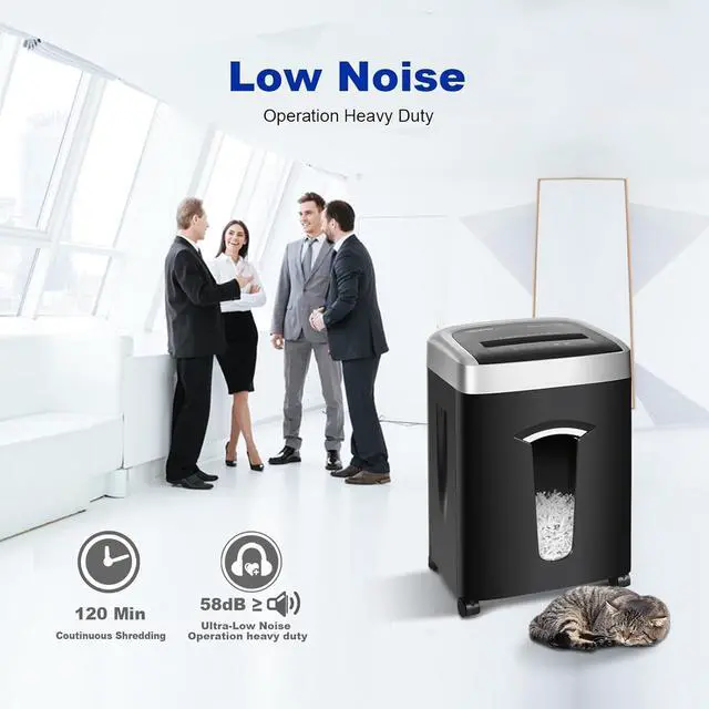 Library-Quiet 58dB OperationRevolutionary noise-dampening engineering keeps sound below conversation-level 58dB quieter than most office printers while maintaining 400W motor power for uninterrupted confidential shredding.