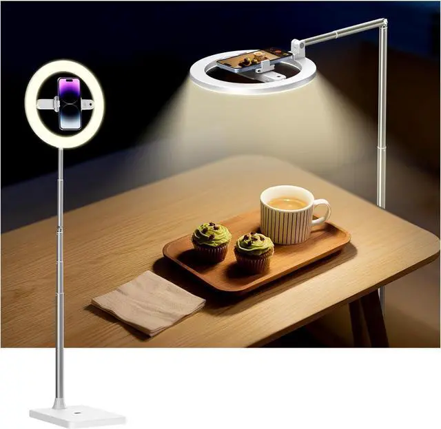 Sturdy and Stable Ring Light for Content CreatorsThe tripod for cooking videos with stand is equipped with 6-section foldable telescopic aluminum alloy poles, It can be adjusted between 11.61 and 68.5 inches. The base is made of carbon steel alloy with an EVA anti-skid pad on the bottom, with a total weight of 6.1 lb, and it can stand firmly even when fully extended, allowing you to shoot and stably every time.