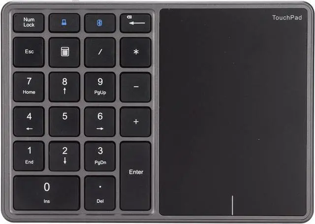 Dual Modes: This number pad with touchpad adopts BT and 2.4G connection, which ensures fast connection.