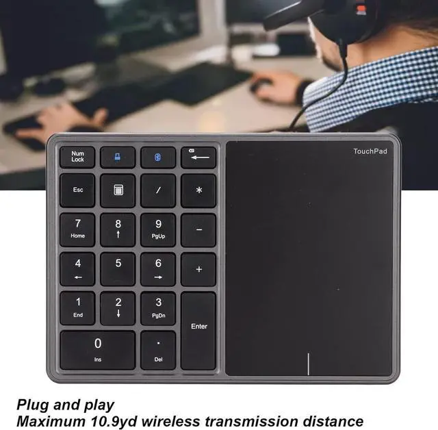 Portable Size: This number pad with touchpad is small in size and light in weight, very convenient and portable. 500mAh Battery: This number pad adopts inbuilt 500mAh battery, and providing maximum 10.9 yd distance.