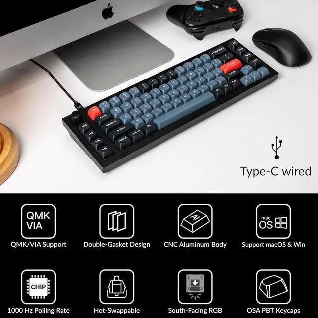 Multi-System Support& Powerful Core: Optimized for Mac users with full Windows compatibility. Includes dedicated Mac/Windows keycaps and a system toggle switch. Powered by a robust ARM-based MCU with a 1000 Hz polling rate, ensuring ultra-low latency for responsive typing and competitive gaming.