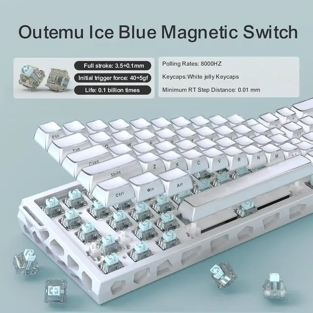 Adjustable Actuation: H60Pro Hall effect gaming keyboard equipped with hot swappable switches for unparalleled precision and control. The rapid trigger keyboard is adjustable from 0.01 mm to 3.5 mm actuation distance, every keystroke is perfectly tailored to your preferences, making it an unrivaled gaming tool