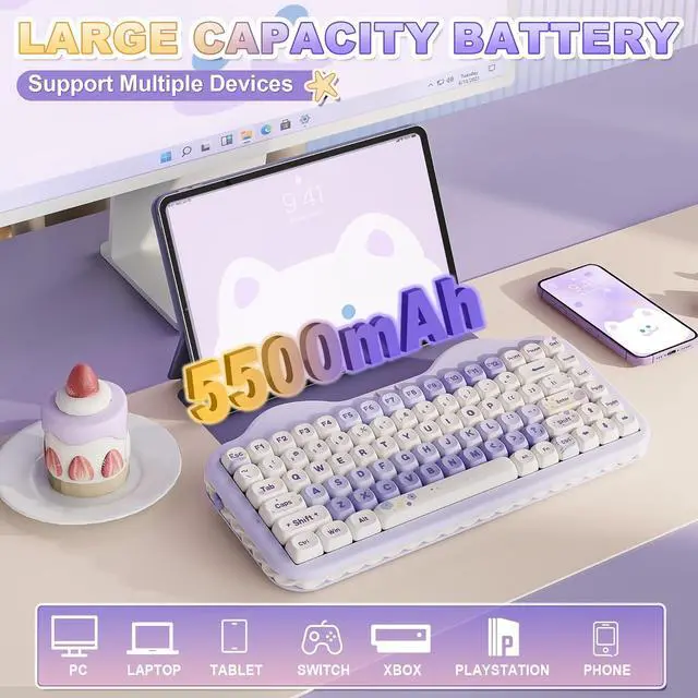 Custom Keyboard with 5500mAh Large Battery: C75 cute wireless keyboard offers limitless customization through programmable software, allowing you to remap keys, create complex macros, and personalize RGB backlit for both Windows and Mac systems. Powered by a high-capacity 5500mAh battery, the pc gaming keyboard delivers exceptional endurance, ensures stable performance during extended work sessions and gaming marathons