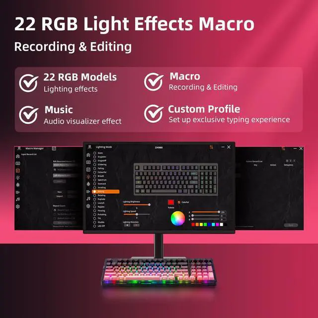 22 RGB Modes with South-Facing& Side LightingWith Transparent case, You can enjoy vivid RGB with 22 preset lighting effects, including side-glow and south-facing LEDs. Combined with OEM-profile keycaps and high transparency legends, the lighting looks clean, consistent, and immersive