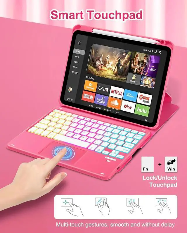 • [Smart Touchpad, Supports Multi-touch] The keyboard built-in smart touchpad, which has multi-touch function and supports 1 2 3 4 fingers Gestures . 1-fingers swipe can move the cursor, click to select the target, 2-fingers swipe can scroll the page and zoom the picture, 3-fingers swipe left and right can switch applications, and 4-fingers click can take a screenshot