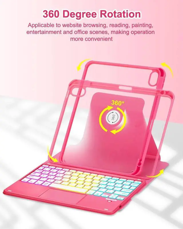 Touchpad Keyboard Case for iPad (A16) 11th 10th Generation, 360 Rotation Cover with Pencil Holder Wireless Backlit Detachable Keypad