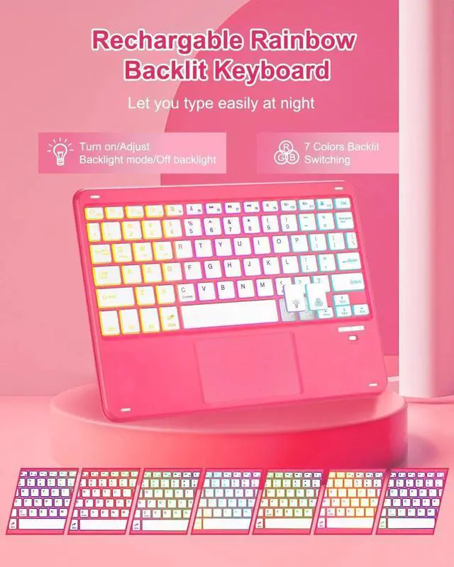 • [7 Color Rainbow Backlight, Multi-function Keys] The keyboard have 7 color rainbow backlit, which can be switched between rainbow backlight mode and breathing light mode, providing you with a superior typing experience in dark environments. The first row of keyboard is equipped with shortcut function keys, which can quickly realize functions such as select all, copy, paste, pause/play, mute, volume adjustment, etc