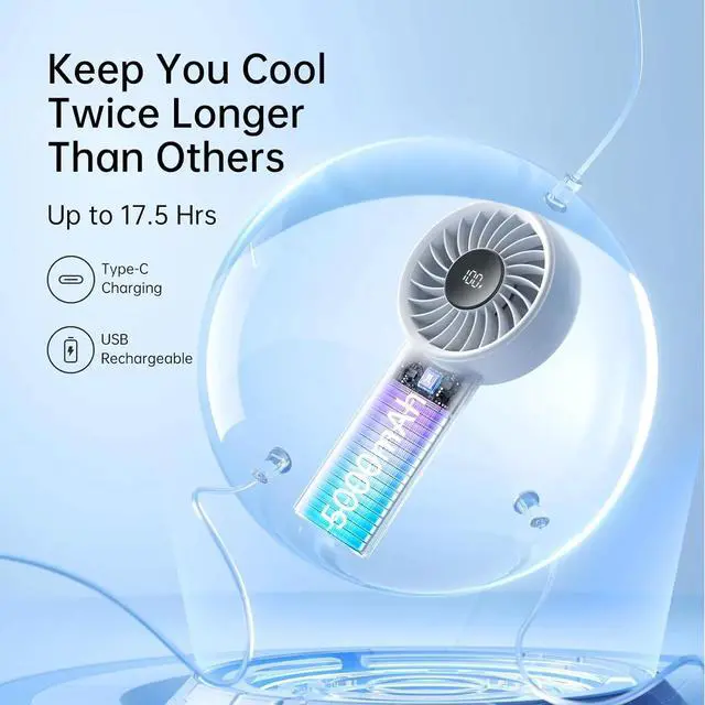 Beat the heat with the Jisulife Turbo Fan, designed for power and versatility. Its Advanced Turbine Fan Blades and brushless motor work in sync to push airflow 30% farther, delivering rapid cooling for hikes, gym sessions, or outdoor adventures. The LED battery display lets you monitor the 5000mAh power bank in real-time, while the 17.5-hour runtime ensures uninterrupted relief during festivals, road trips, or workdays.