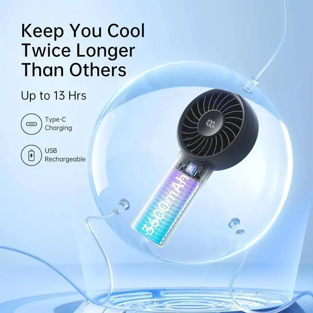 Beat the heat with the Jisulife Turbo Fan, designed for power and versatility. Its Advanced Turbine Fan Blades and brushless motor work in sync to push airflow 30% farther, delivering rapid cooling for hikes, gym sessions, or outdoor adventures. The LED battery display lets you monitor the 3600mAh power bank in real-time, while the 13-hour runtime ensures uninterrupted relief during festivals, road trips, or workdays.