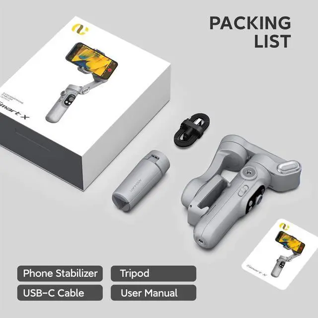 In this upgraded AOCHUAN APP, you can achieve dozens of functions like gesture control and face tracking, beauty filters, auto-inception, timelapse and motion timelapse. And its UI is very simple and friendly without registration. Especially, SMART X gimbal can track your face and keep your face in the center when you are live-streaming, such as TikTok, Facebook, YouTube shorts, and Instagram IGTV at anytime. [AOCHUAN Gimbal Package Included] 1x AOCHUAN SMART X gimbal (phone not included), 1 x Tripod, 1 x USB-C charging cable, and 1 x User Manual.