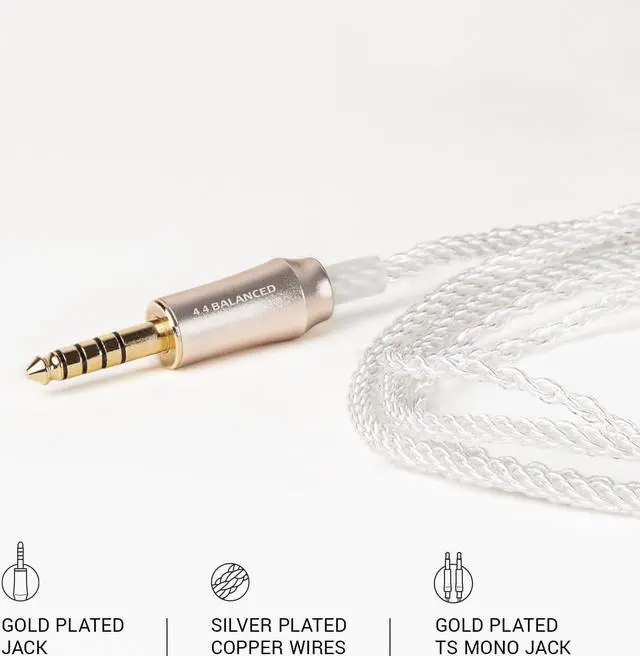 SPECIFICATIONS: The cable is woven from 8 wire and splits into 4 continuous wire braids; each wire contains 25 strands. Cable length is 1.2 m/ 3.9 ft. Using pure silver-plating for better audio conductivity, the cable is soft & flexible but also confers durability and stable connection, which ensures clear and clean stereo sound delivery to your headphone inputs.