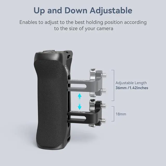 The handle can be attached additional gears such as microphone (SmallRig 3468), LED light (SmallRig 3286), monitor mount (SmallRig 2905) for DIY options.